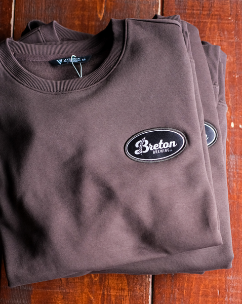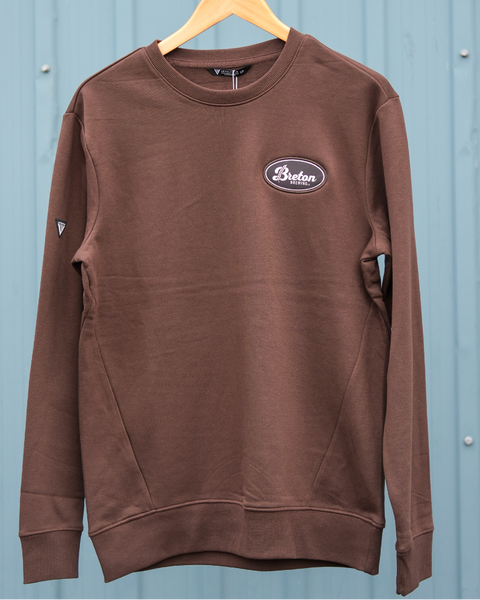 DescriptionMen's crew neck sweater featuring a patch logo on the left chest.